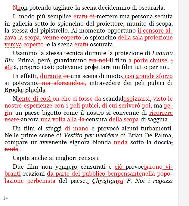In pratica non c’è una pagina senza scritte rosse. Non capisco cosa ci trovino di piacevole gli editor a rovinare in questo modo i libri degli altri.